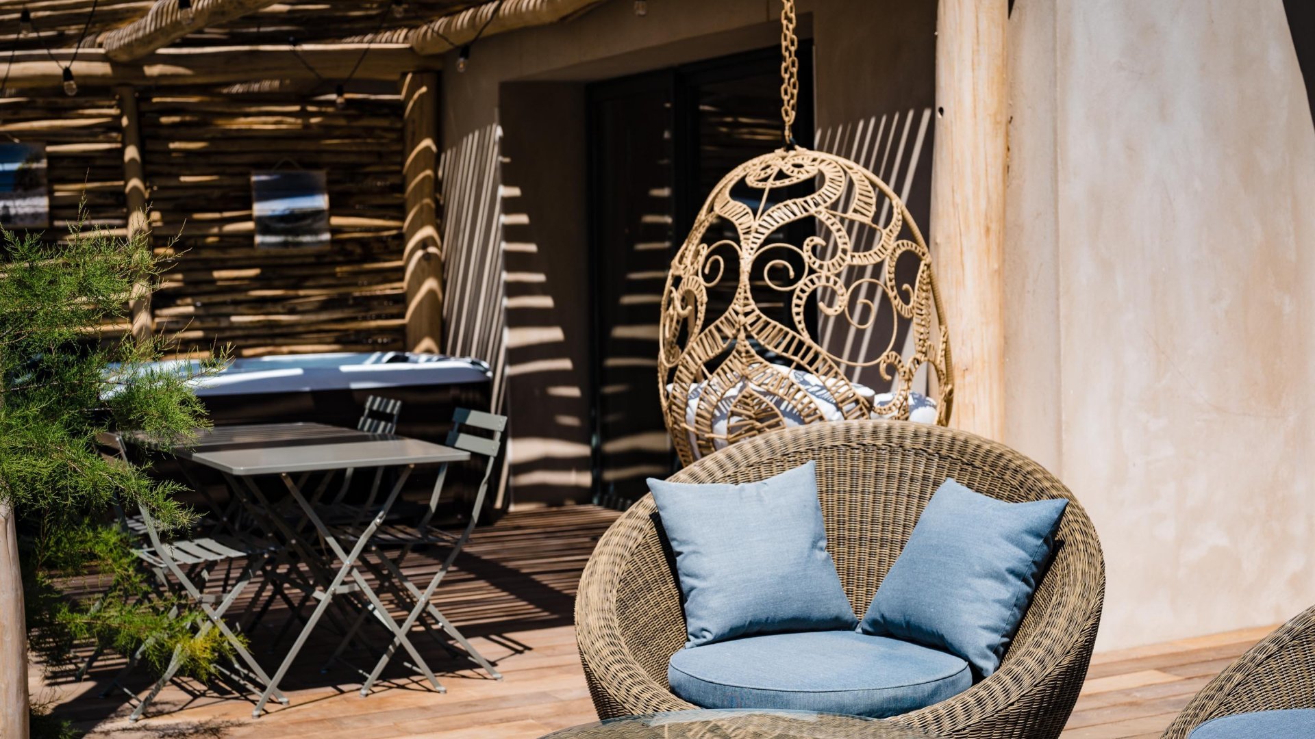 L’esprit est dans l’harmonie de la matière. Un mélange brut et doux, dans le bois flotté et la pierre, le sable et le jardin.